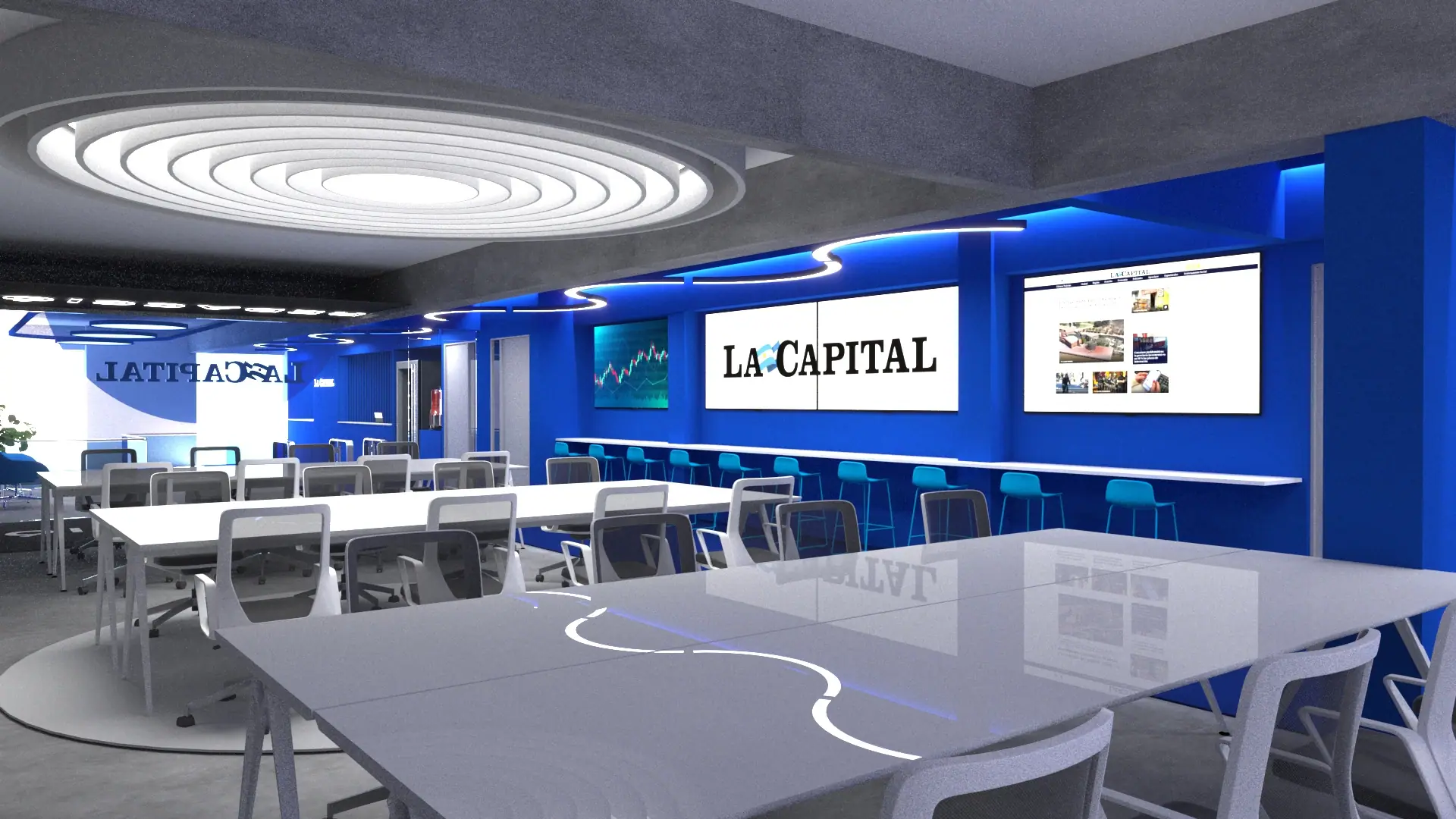 Diseño integral de la recepción, redacción y estudio audiovisual de La Capital de Rosario, fusionando identidad periodística con innovación espacial. Un equilibrio entre funcionalidad y estética, donde cada detalle potencia la dinámica de trabajo, optimiza la circulación y refuerza la identidad del diario más emblemático de la ciudad.